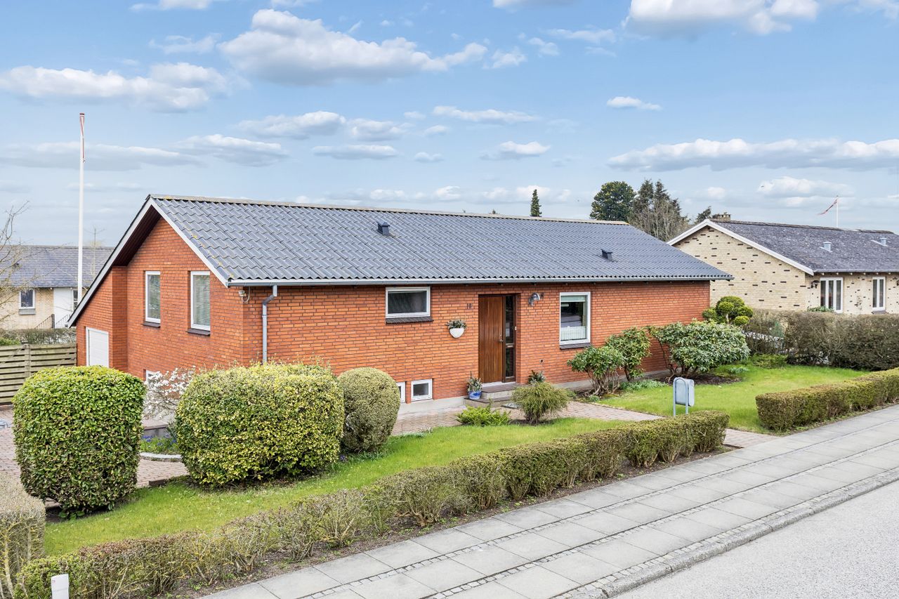 På Færøvej i Middelfart – lige i smørhullet mellem gymnasiet, idrætsanlægget og hospitalet – finder du denne nydelige rødstensvilla med tilhørende solrig have orienteret mod syd. Huset byder på en god indretning med tre værelser og store opholdsrum samt en anvendelig kælder, der giver 160 m2 hus i alt. Dertil kommer en integreret garage på 20 m2.